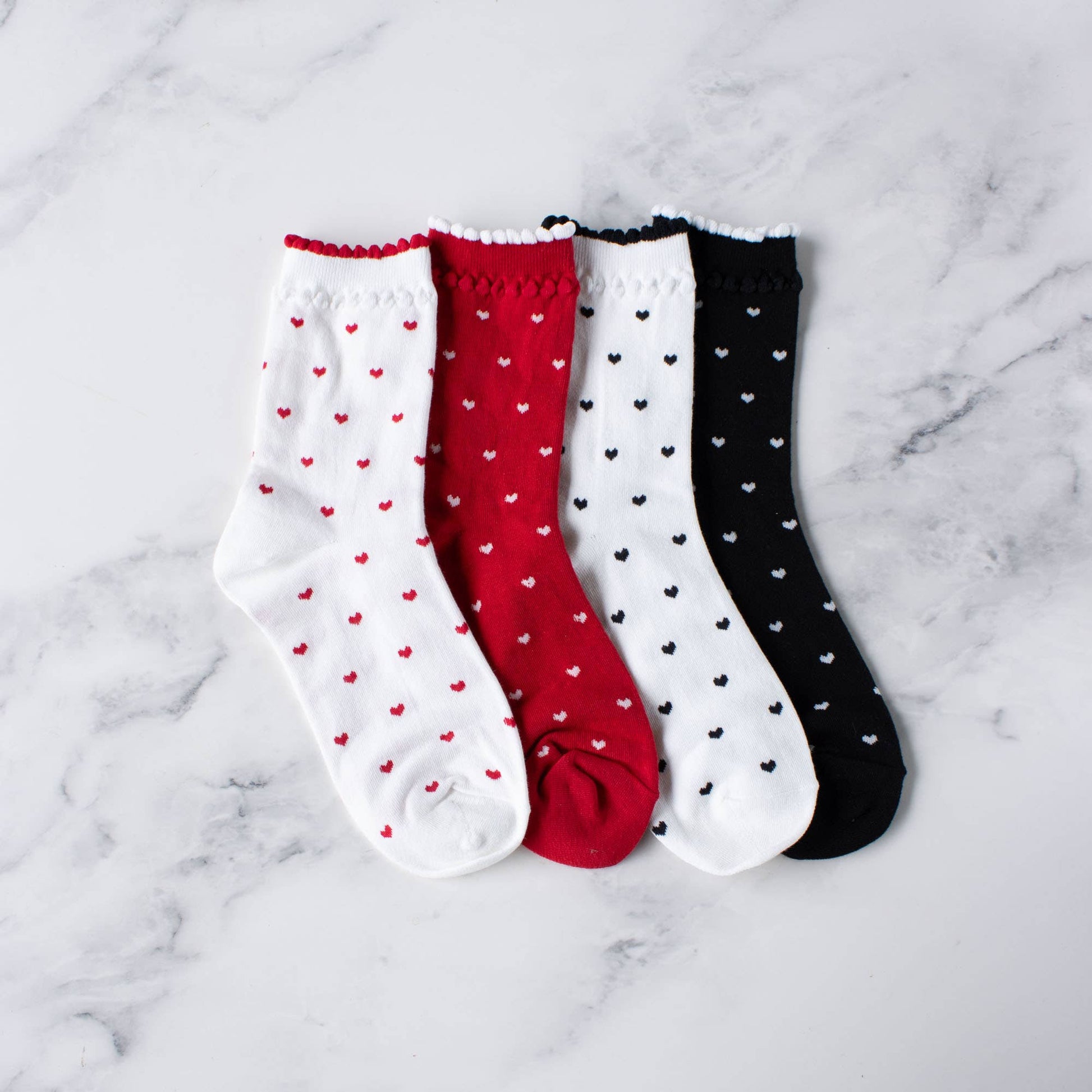Tiepology | Always Lovely Casual Socks | Red/White Heart