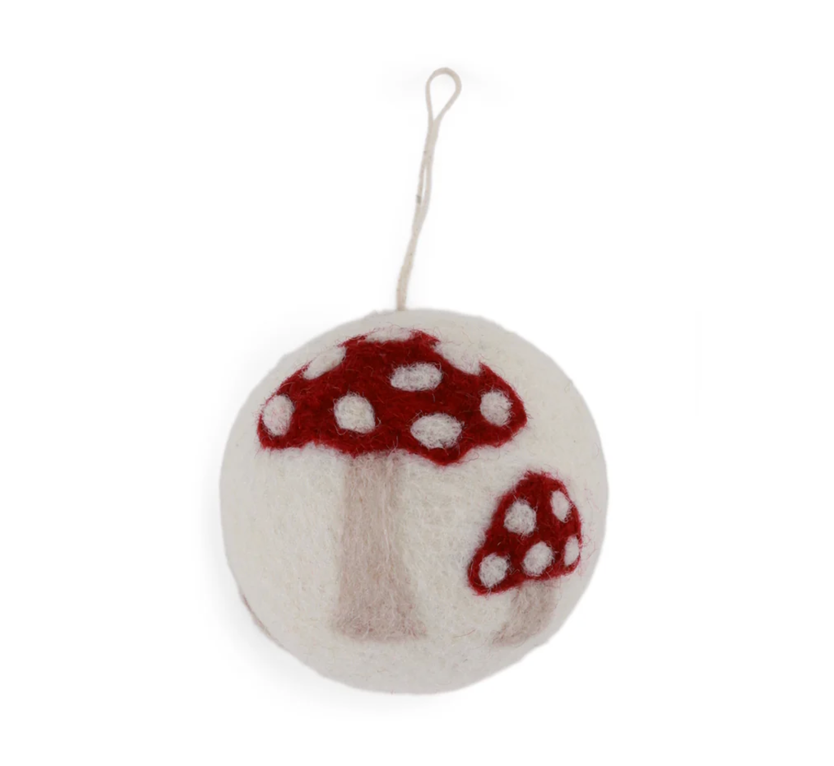 Add a touch of woodland magic to your festive decorating with the Gry & Sif Christmas Bauble Mushrooms. Handmade from soft New Zealand wool, this cream felt bauble is detailed with two charming red and white mushrooms, evoking the cosy, storybook feel of a Nordic forest.
